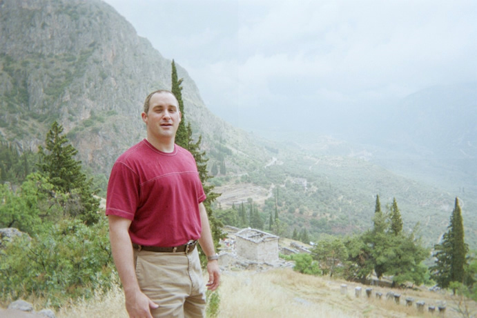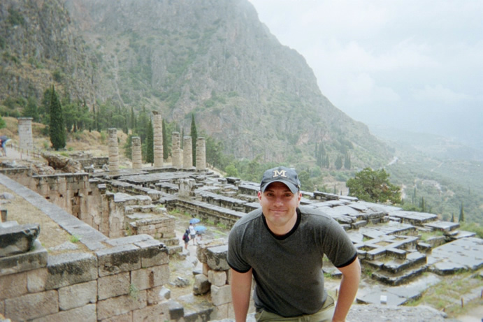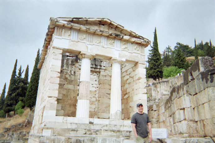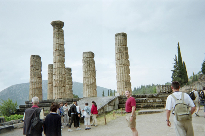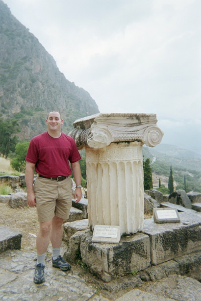 Yener posed for this picture by Apollo's Temple. This is his "Hurry it up and take the picture already!" face. |