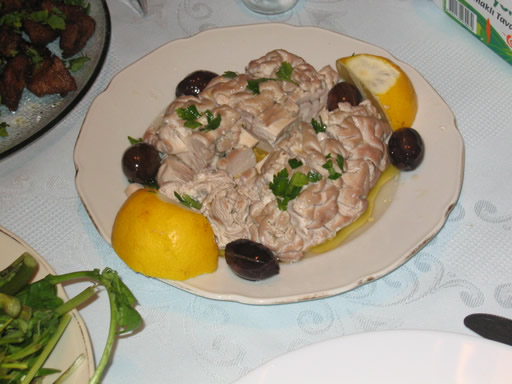 This is brain salad. It's just cooked lamb/sheep's brain. I'm