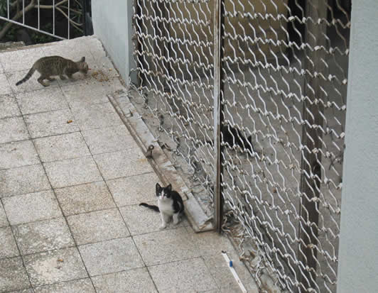 cats EVERYWHERE. These kitties are usually cute, but they aren't